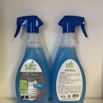 SOFT’GLASS nettoie, dégraisse et fait briller les vitres, miroirs, et toutes surfaces modernes, sans laisser de traces ou de voiles. Efficace sur les surfaces intérieures ou extérieures. SOFT’GLASS laisse un délicat parfum de fleurs d’olivier sur les surfaces nettoyées. Article vendu à l'unité (pulvérisateur 750 ml)