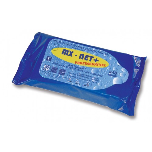 Les lingettes MX-NET + sont constituées d’un support en textile “non tissé” et imprégné (50g/m²) de liquide nettoyant bactéricide, fongicide et virucide.