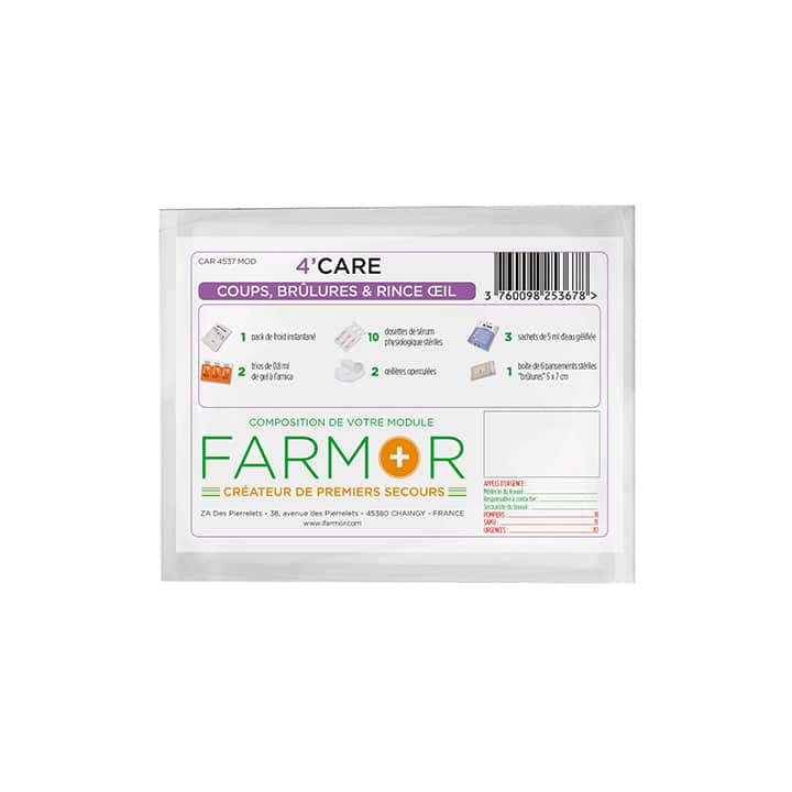 Pochette de réassort pour trousse de secours « Coups, brûlures et Rince œil »