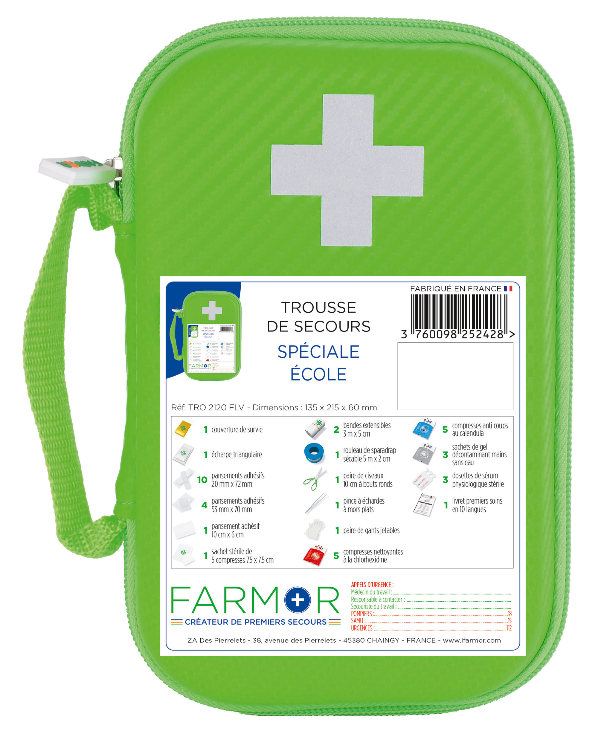 Grâce à sa composition respectant le “Protocole national sur l’organisation des soins et des urgences, dans les écoles et les établissements publics locaux d’enseignement”, cette trousse ECOLE permet de soigner et de protéger :